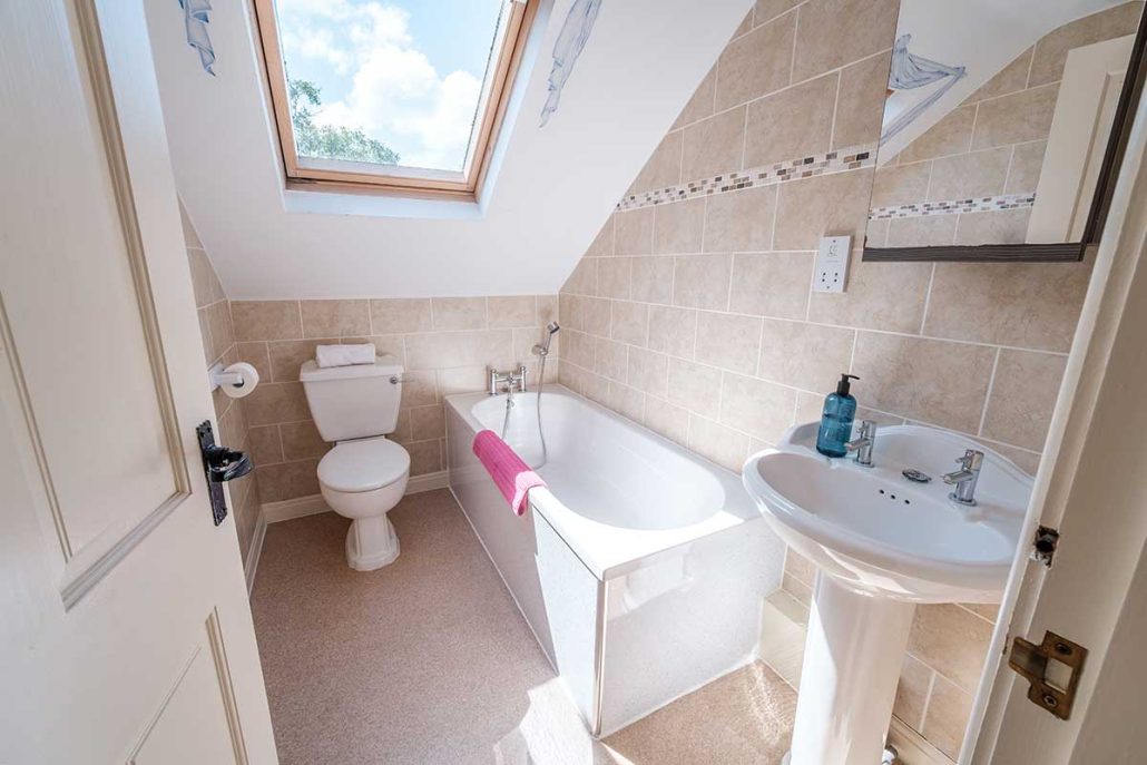 The bedrooms have fitted wardrobes, sloping ceilings and Velux windows and there is a family bathroom on the first floor.