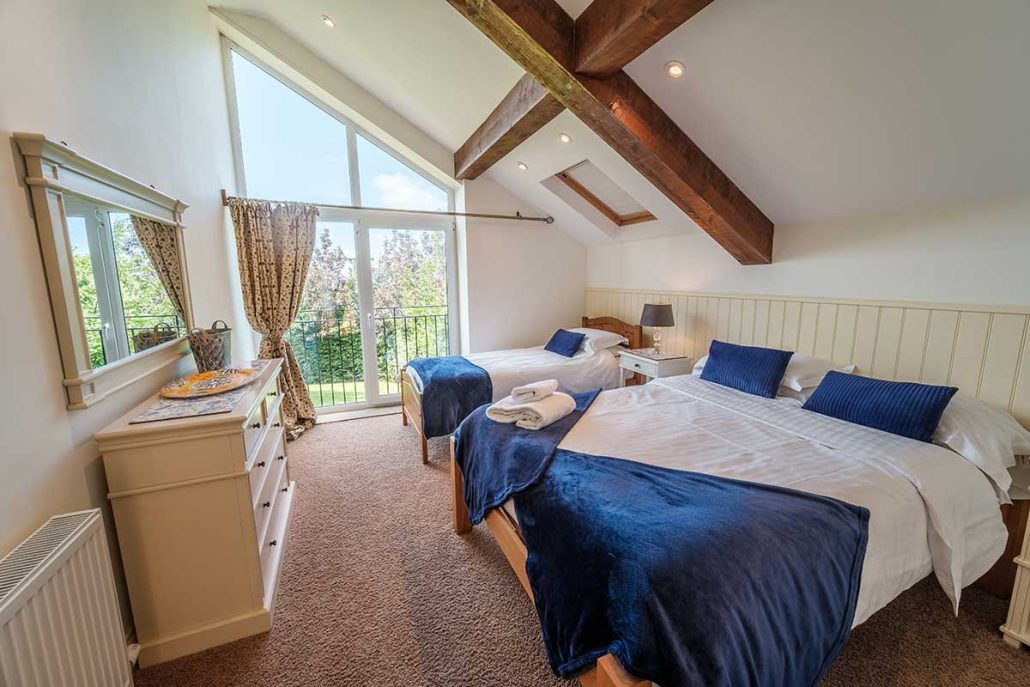 There are amazing views across the countryside towards the coast. Both upstairs bedrooms are family rooms with double bed and day bed. Both have en-suite showers but one also has a separate bath.